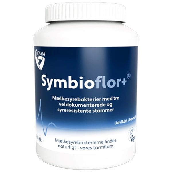 Biosym Symbioflor+ er et kosttilskud med et højt indhold af levedygtige mælkesyrebakterier, som medvirker til at vedligeholde din naturlige tarmflora.