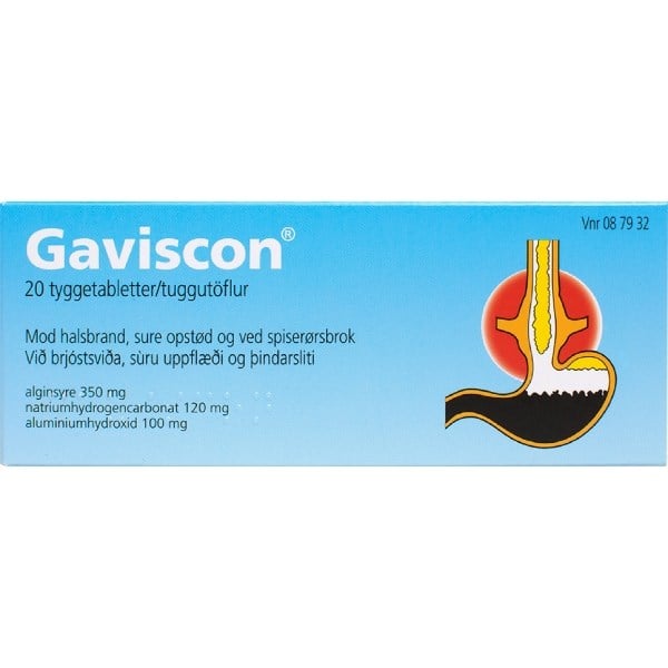 Gaviscon tyggetabletter findes i pakning med 20 og 120 stk.