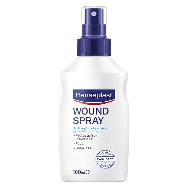 - Hansaplast Wound Spray er alkoholfri, svier ikke ved påføring og udtørrer ikke huden.