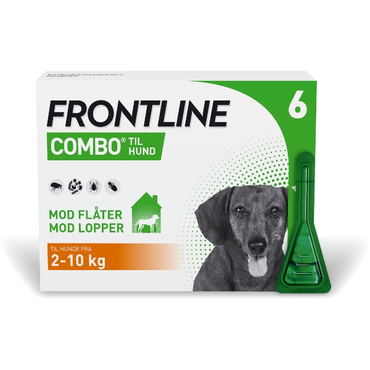 Frontline Combo Hund 2-10 kg findes i pakning med 3 stk og 6 stk pipetter á 0,67 ml.