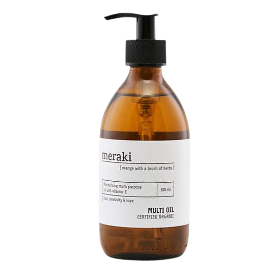 300 mlMultiolie fra Meraki som kan bruges til at fugte tør hud, hårspidser eller som hjælp til barberingen. Olien har mange funktioner og rummer økologiske olier fra sesam, oliven og rasp, som alle fugter, nærer og blødgør huden.