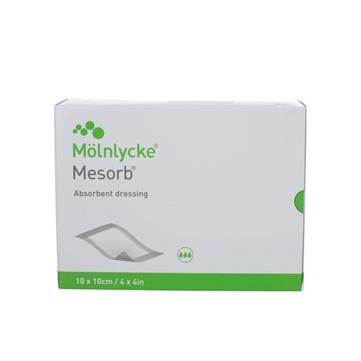 Mesorb forbinding er en bandage på 10x10 cm beregnet til moderat til kraftigt væskende sår, når et almindeligt plaster ikke er nok. Forbindingen er skabt til at kunne absorbere og dermed holde på større mængder sårvæske uden at lække. Forbindingen er lavet i et væskeafvisende materiale, der forhindrer bakterier og skidt at trænge ind i såret og beskytter tøj og sengetøj mod sårvæske og blod.