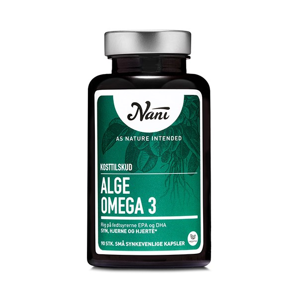 90 stk.NANI Alge Omega 3 er et 100 % vegansk tilskud, som indeholder algeolie, og derfor er naturligt rigt på omega-3 fedtsyrerne EPA og DHA.