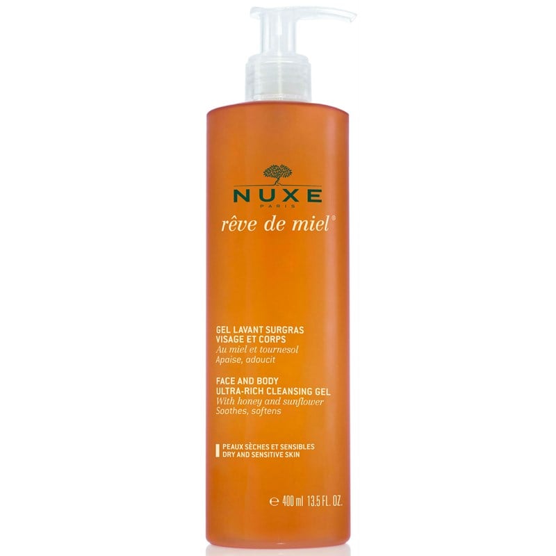 400 mlNuxe Rêve de Miel Gel Lavant Surgras er en mild, sæbefri shower gel med naturlig honning og solsikkeolie. Gelen kan anvendes af alle hudtyper, men er særlig ideel til sensitiv hud og har en lindrende og blødgørende effekt.