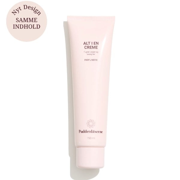 - Pudderdåserne Alt-i-en Creme er ideel som supplement til andre produkter, hvis huden er særligt tør, f.eks. i kombination med Pudderdåserne Anti-Age Ansigtscreme.