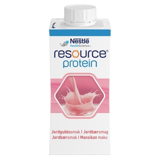 4 x 200 ml.Resource Protein Ernæringsdrik Jordbær er en ernæringsdrik med smag af jordbær, som indeholder ekstra energi og protein.