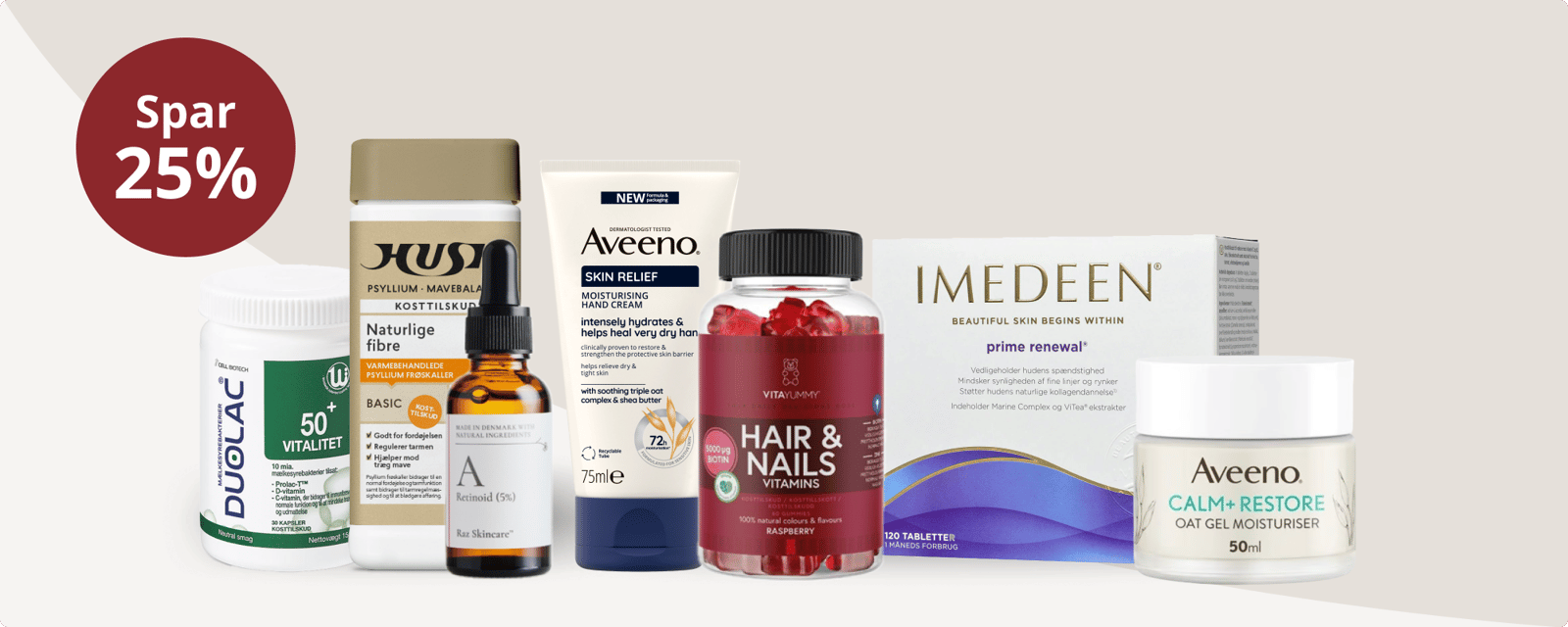 Udvalgte produkter inden for hudpleje og kosttilksud